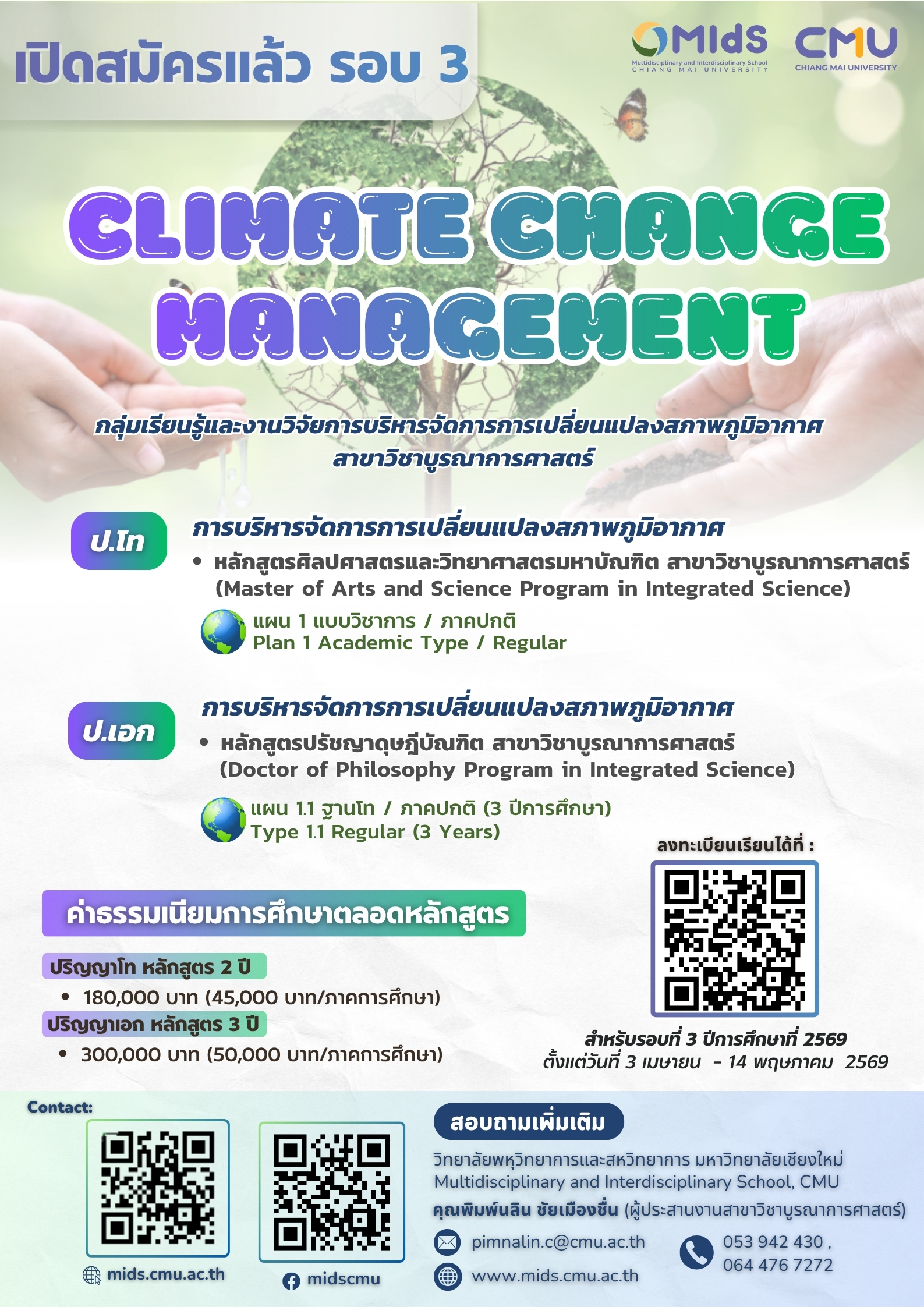 ศึกษาผลกระทบและแนวทางการปรับตัวต่อการเปลี่ยนแปลงสภาพภูมิอากาศ ทั้งในมิติสิ่งแวดล้อม เศรษฐกิจ และสังคม