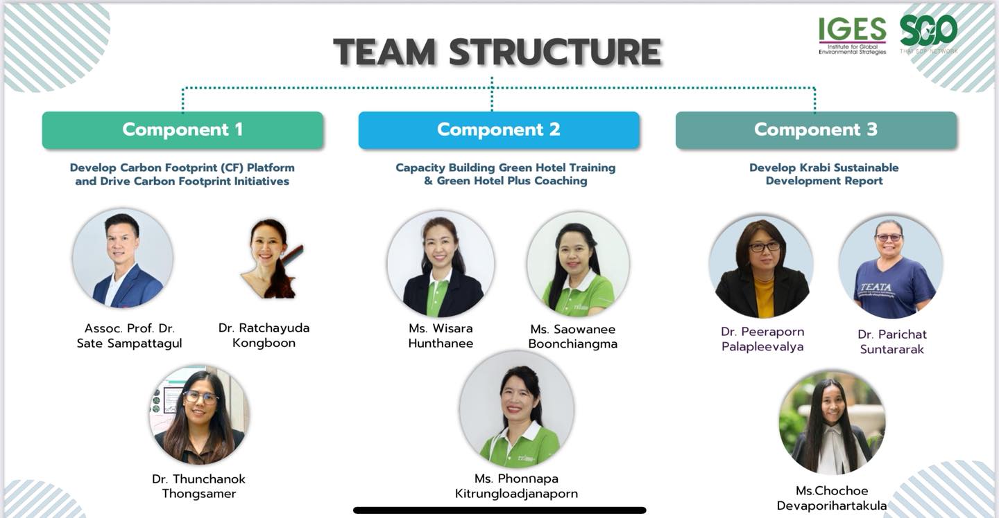 รองศาสตราจารย์ ดร. เศรษฐ์ สัมภัตตะกุล ผู้อำนวยการสำนักบริการวิชาการ (UNISERV) และหัวหน้าหน่วยวิจัยเพื่อการจัดการพลังงานเศรษฐนิเวศ (3E) มหาวิทยาลัยเชียงใหม่ และอาจารย์ประจำสาขาวิชาบูรณาการศาสตร์ กลุ่มการเรียนรู้และงานวิจัยการบริหารจัดการการเปลี่ยนแปลงสภาพภูมิอากาศ (MIdS – CMU)ร่วมเป็นส่วนหนึ่งในการขับเคลื่อนการท่องเที่ยวอย่างยั่งยืนของจังหวัดกระบี่ โดยจับมือกับ สมาคมการผลิตและบริโภคอย่างยั่งยืนแห่งประเทศไทย (Thai SCP) และ สถาบันสิ่งแวดล้อมไทย (TEI) ร่วมกับภาคีเครือข่ายในจังหวัดภูเก็ตและภาคใต้