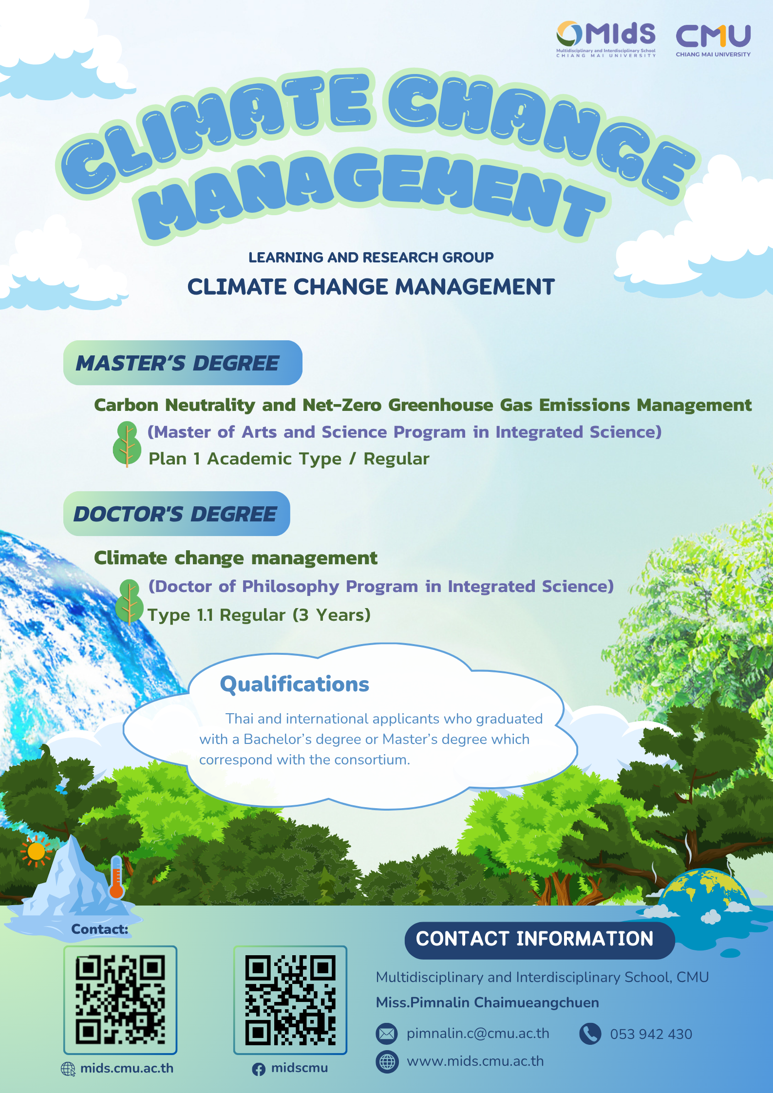 ระดับปริญญาเอก กลุ่มการบริหารจัดการการเปลี่ยนแปลงสภาพภูมิอากาศ (Climate Change Management)