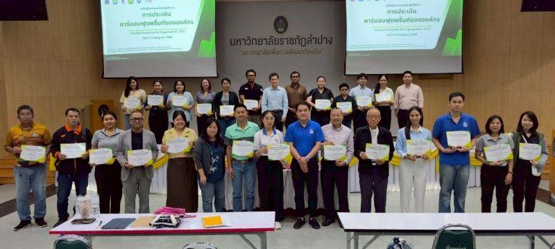 โครงการอบรมเชิงปฏิบัติการ “หลักสูตรการประเมินคาร์บอนฟุตพริ้นท์ขององค์กร” (Carbon Footprint for Organization: CFO) ตามกรอบมาตรฐานขององค์การบริหารจัดการก๊าซเรือนกระจก (องค์การมหาชน) จัดขึ้นระหว่างวันที่ 4 – 5 กรกฎาคม 2568 ณ ห้องประชุมโอฬารรัตน์ มหาวิทยาลัยราชภัฏลำปาง จังหวัดลำปาง ภายใต้การสนับสนุนโครงการห้องทดลองเชิงนโยบาย (Policy Lab) จากมหาวิทยาลัยมหิดล มีผู้เข้าร่วมอบรมรวมจำนวน 29 คน จากหน่วยงานภาครัฐ เอกชน และรัฐวิสาหกิจในพื้นที่จังหวัดลำปางและจังหวัดเชียงใหม่