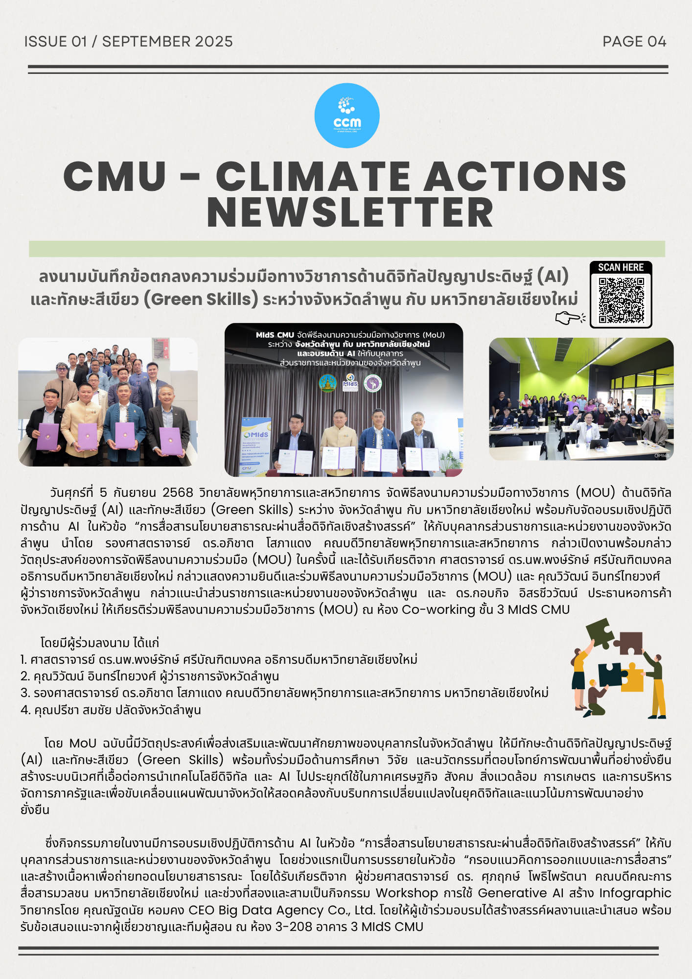 อัพเดทกิจกรรม Climate Actions ประจำเดือนกันยายน 2568 ภายใต้ความร่วมมือระหว่าง สำนักบริการวิชาการ (UNISERV) หน่วยวิจัยเพื่อการจัดการพลังงานและเศรษฐนิเวศ (3E) และหลักสูตรบูรณาการศาสตร์ โปรแกรม “Climate Change Management” MIds School