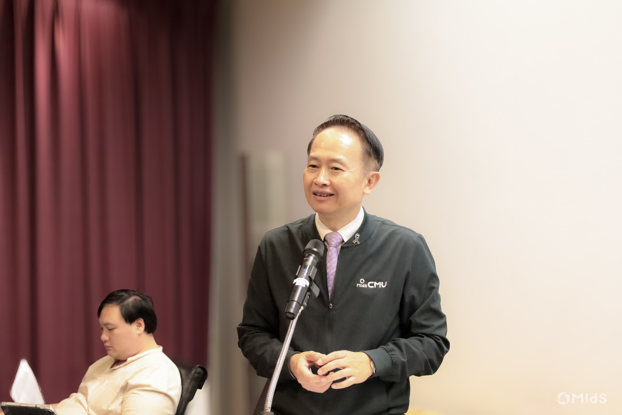 การกล่าวสรุปสาระสำคัญจากเวทีเสวนาและกล่าวปิดงาน ในหัวข้อ "ก้าวแห่งอนาคต: ความร่วมมือระหว่างมหาวิทยาลัยเชียงใหม่และภาคอุตสาหกรรมเพื่อความเป็นผู้นำความยั่งยืนของประเทศ" โดย ศาสตราจารย์ ดร.อภิชาต โสภาแดง คณบดีวิทยาลัยพหุวิทยาการและสหวิทยาการ มหาวิทยาลัยเชียงใหม่