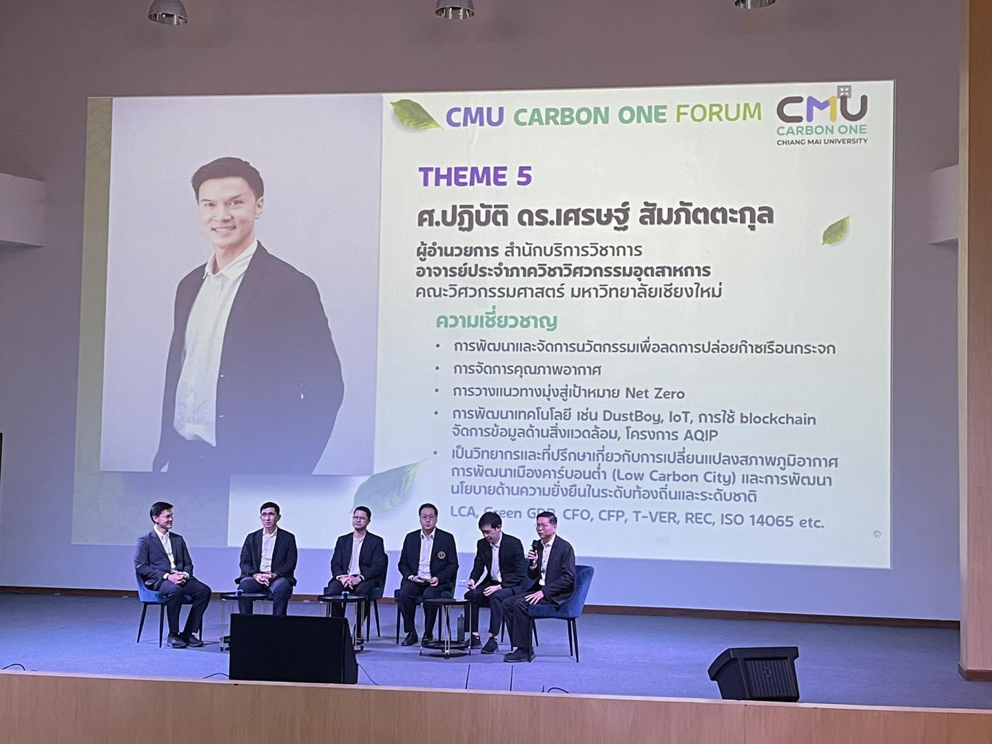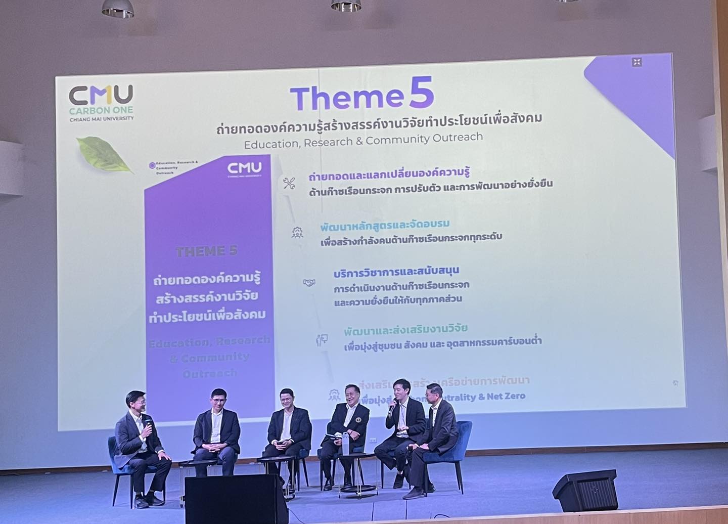 เวทีเสวนา “CMU Carbon One: ผนึกกำลังขับเคลื่อน มช. สู่ Net Zero” พิธีมอบรางวัล CMU Climate Action Award รายงานผลโครงการติดตามฐานข้อมูลก๊าซเรือนกระจก (Landscape 2) Networking & Consulting อัปเดตเทคโนโลยีและแนวทางลดการปล่อยก๊าซเรือนกระจก